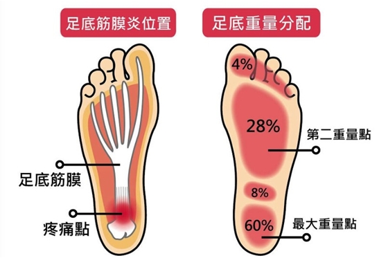 足底筋膜炎是一種腳底疼痛的疾病,通常是足弓下的足底筋膜因過度使用而產生微小撕裂所致,最典型的症狀是早晨下床時的劇痛,走幾步路後會稍微緩解,但長時間站立或行走又會加劇疼痛。 其原因包含長時間站立、運動過量、體重過重、穿著不合適的鞋子,以及足弓結構異常(如扁平足或高足弓)等。