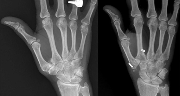 手術治療方式會根據病患的年齡及嚴重度而調整,包括微創關節鏡手術、關節融合、大多角骨切除合併韌帶重建或人工韌帶懸吊,人工關節置換等等。