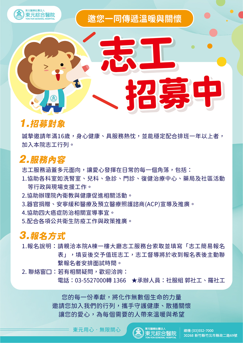 東元綜合醫院志工招募中!