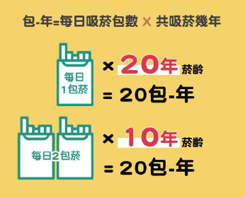 ● 備註2:包-年:平均每天吸菸包數*吸菸年數(例如每天1包,共吸菸20年)。